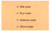 ![]() | Mât radar, Tour radar, Antenne radar, Dôme radar. |