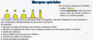 Nous avons fini les symboles présents sur une carte, mais nous n’avons pas la prétention de les avoir tous expliqués. Nous avons seulement parcouru l’ouvrage 1D qui doit être toujours à bord pour compléter nos connaissances.